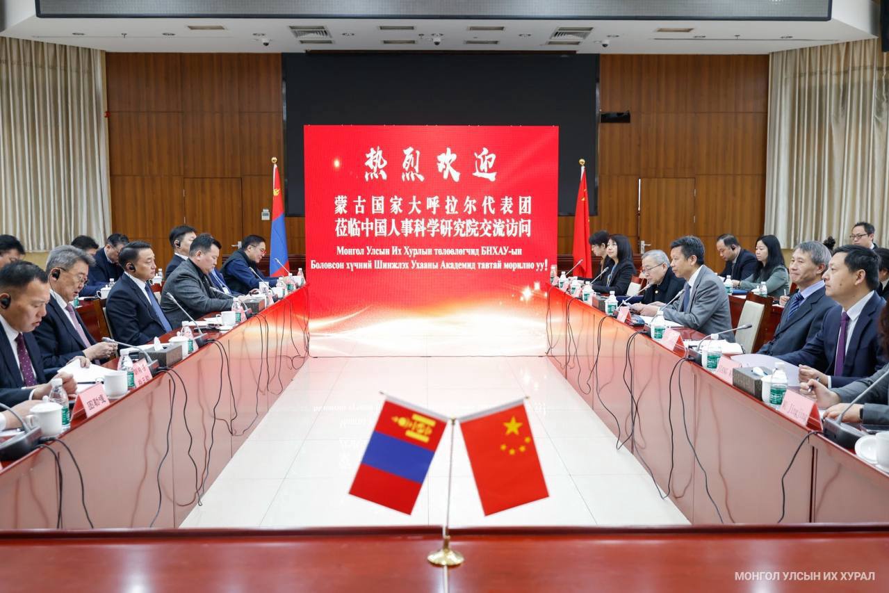 Мөн Улсын Их Хурлын дарга тэргүүтэй төлөөлөгчид Хятадын хүний нөөцийн шинжлэх ухаан судлалын хүрээлэнд зочилж, тус улсын төрийн албаны хүний нөөцийн бодлого, хэрэгжүүлж буй үр дүнтэй аргуудын талаар санал солилцлоо. Улсын Их Хурлын дарга Д.Амарбаясгалан уулзалтын үеэр манай улс мэргэшсэн, тогтвортой, чадварлаг төрийн албыг бий болгож, менежментийг олон улсын түвшинд хүргэхээр ажиллаж эхэлснийг дурдав. Тэрбээр дижитал технологи, хиймэл оюун ухааныг хүний нөөцийн бодлогодоо ашиглаж эхэлсэн тус улсын туршлагаас судлах хүсэлтэй байгаагаа илэрхийллээ.