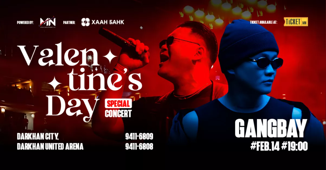 Зөвхөн хосууд болон залууст зориулсан романтик уур амьсгал. Gangbay хамтлагийн хит дуунууд, сэтгэл хөдөлгөм тоглолт шоу, мартагдашгүй дурсамжийг бүтээх үдэш болно.