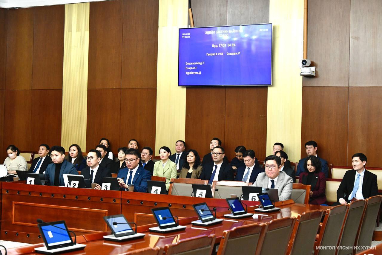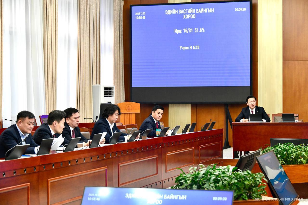УИХ-ын Эдийн засгийн байнгын хорооны өнөөдрийн (2025.12.23) хуралдаан ирвэл зохих 31 гишүүний 16 нь хүрэлцэн ирснээр 10 цаг 46 минутад эхэллээ.