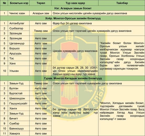 Хил хамгаалах ерөнхий газраас хилийн боомтуудын 4-р сард ажиллах цагийн хуваарийг хүргэж байна.